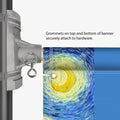"Light pole" or "street pole banners" have high visual impact and citywide exposure. Take your message outdoors with these double sided graphics. Available in 18, 24 or 30 inches wide and up to 96 inches tall. We print in full color a single piece of vinyl front and back. Finished banners include 2-inch pole pockets and a grommet at each corner seam to keep your product in place. If your project requires custom finishing options.